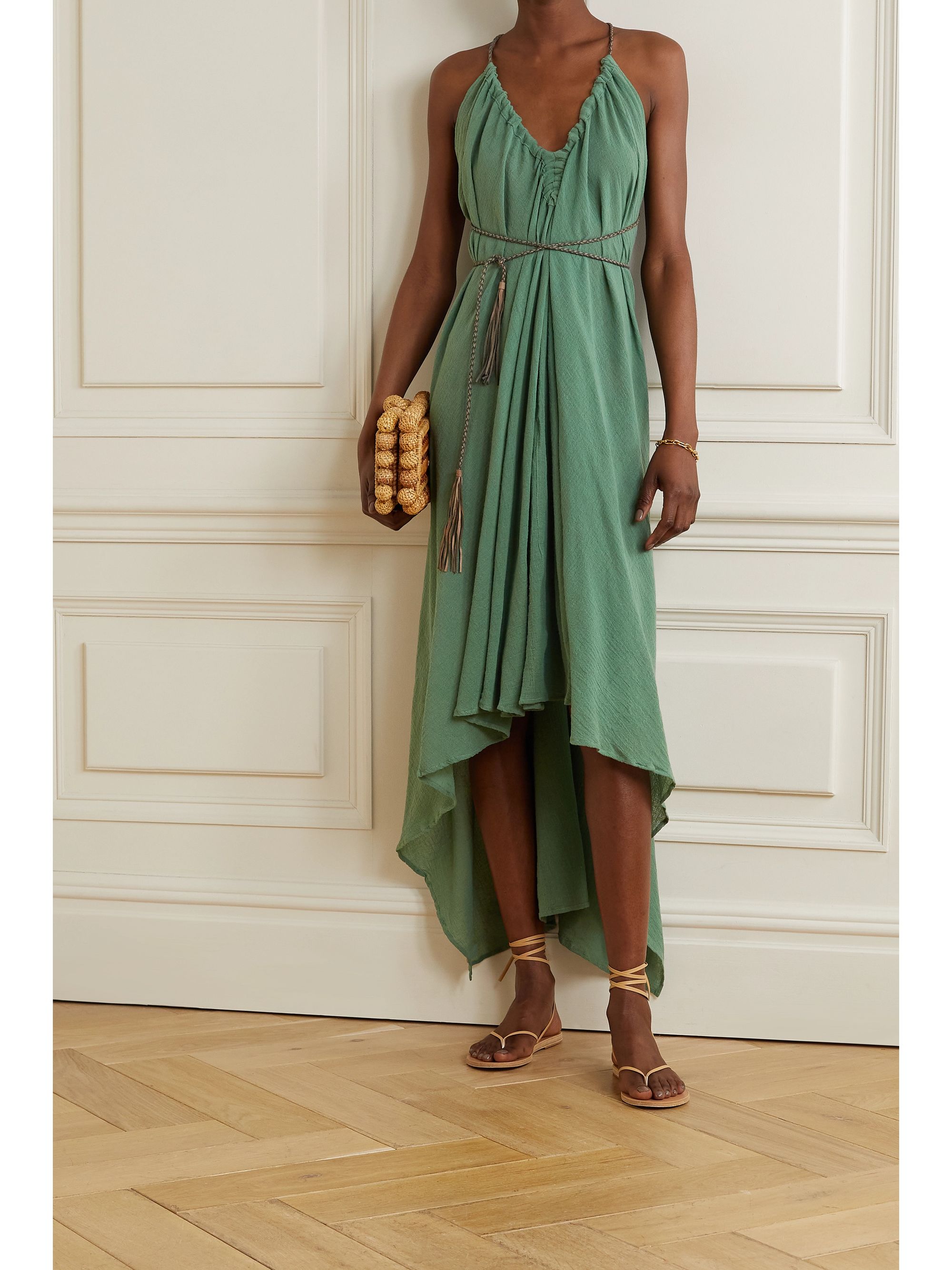 Cotton gauze dress clearance, Selena braided-trim plissé cotton-gauze clearance