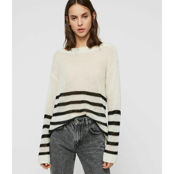 All saints striped jumper clearance, Allsaints S White Black Stripe Lune clearance