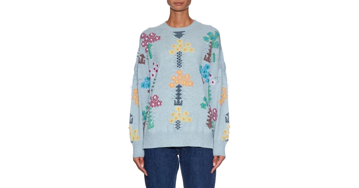 Embroidered cashmere sweater clearance