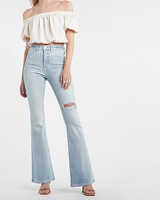 Light wash ripped flare jeans clearance, Blue Light Wash High Waisted Ripped clearance
