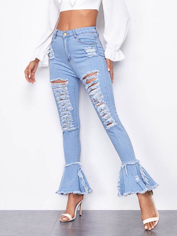 - Light wash ripped flare jeans shop