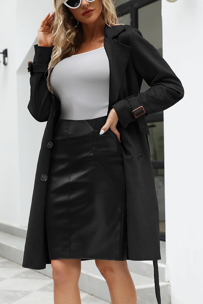 Bellivera women's faux suede long jacket clearance, Bellivera Women's Faux Suede Leather Trench Coat Long Jacket, Lightweight Spring Windbreaker with Belt 18CLA Black S : Amazon.ca: Clothing, Shoes u0026 Accessories clearance