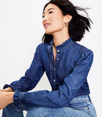 Ruffle chambray top clearance, Chambray Top with Ruffle Detail | Women clearance