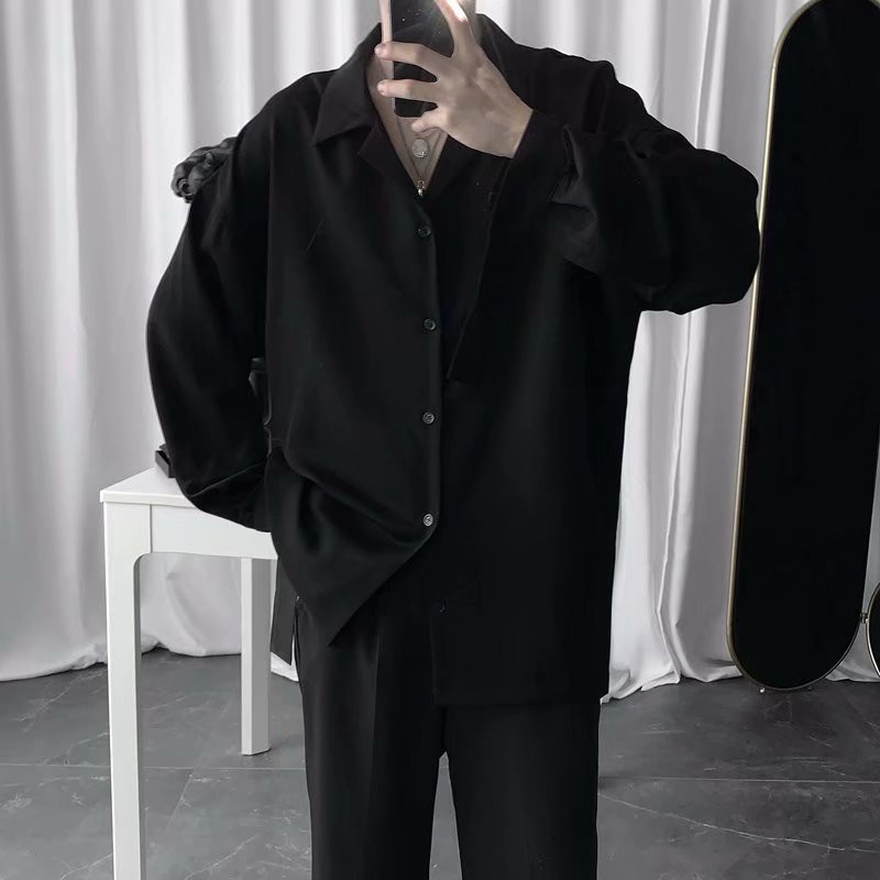 Baggy black long sleeve shirt clearance, Fashion Black Shirt Long-Sleeved Shirt clearance