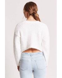 - Cropped white fuzzy sweater sale online