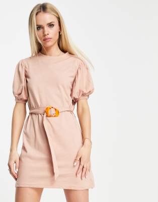 Belted t shirt dress clearance, Missguided Petite puff sleeve belted t clearance