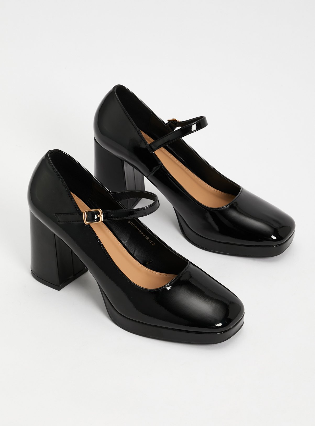 Sainsbury's ladies flat shoes clearance, Black Faux Patent Platform Mary Janes clearance
