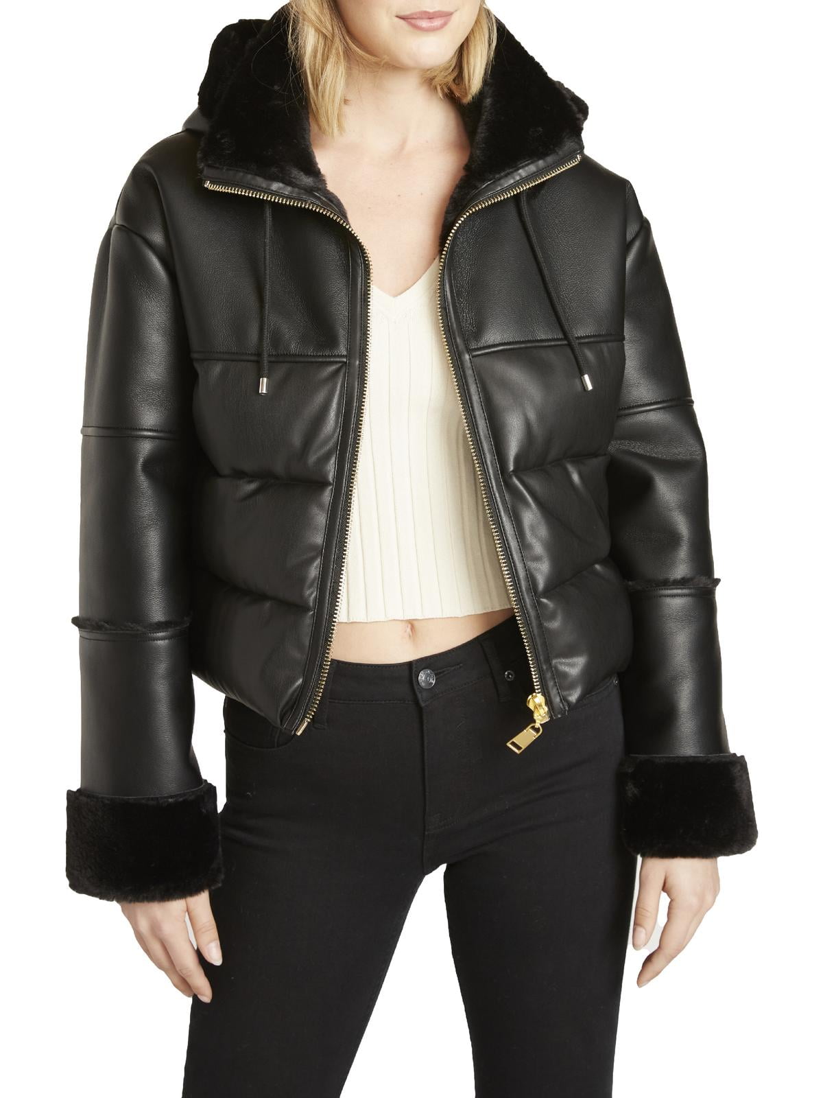 - Faux leather puffer jacket with faux shearling trim outlet