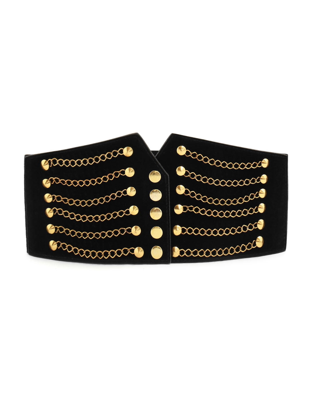 - Black waist belt with gold chain clearance
