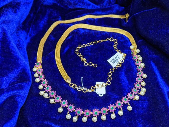 Imitation jewellery waist belt clearance, Indian Hip Belt With Cz Stones Saree clearance