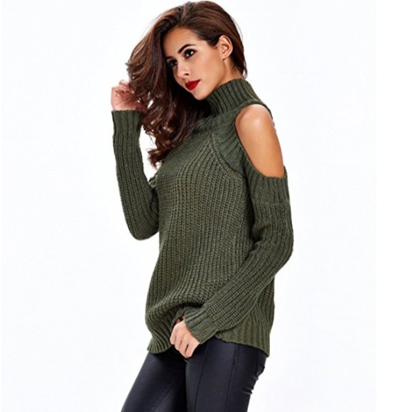 - Green cold shoulder sweater outlet
