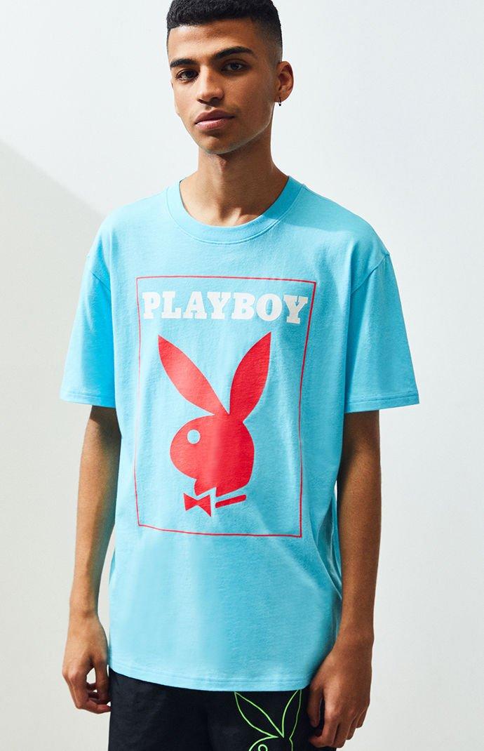 Playboy shirt blue clearance, PacSun X Playboy Safety Logo T-shirt in clearance