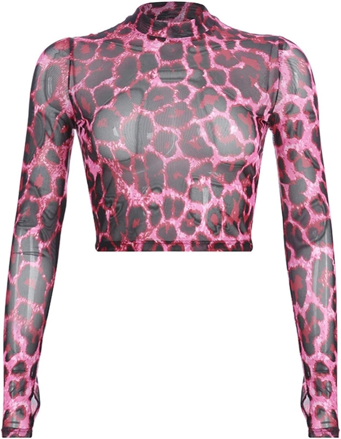 Pink mesh shirt clearance, Hot Pink Mesh Contrast Seam Long Sleeve clearance