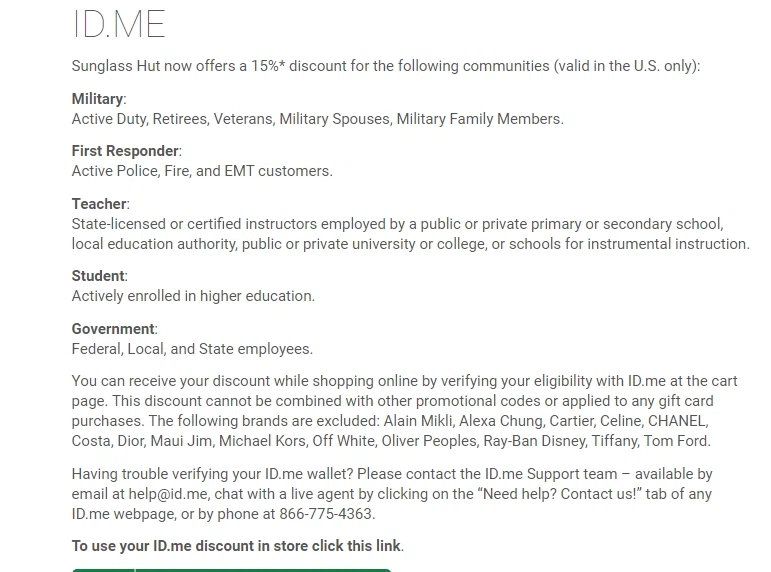 - Sunglass hut healthcare discount