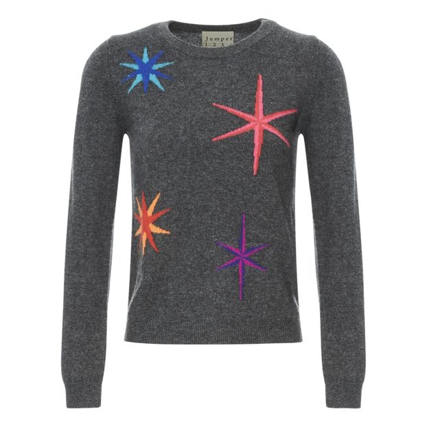 Charcoal grey cashmere jumper clearance, Multi Star Crewneck Cashmere Jumper clearance