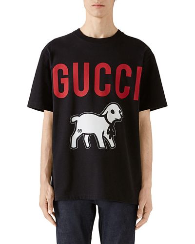 Gucci sheep shirt clearance, Gucci Lamb Logo Heavy Oversized Tee Off clearance