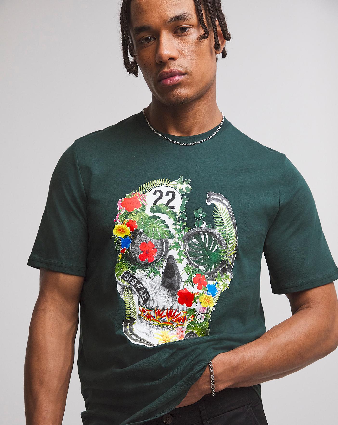 Floral skull shirt clearance, Floral Skull Graphic T-shirt Long clearance