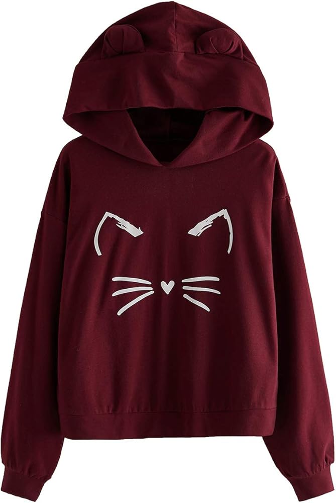Cat print sweatshirt clearance, Romwe Women's Cat Print Sweatshirt Long clearance