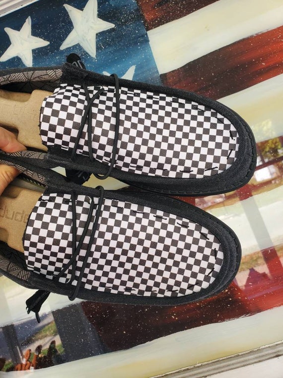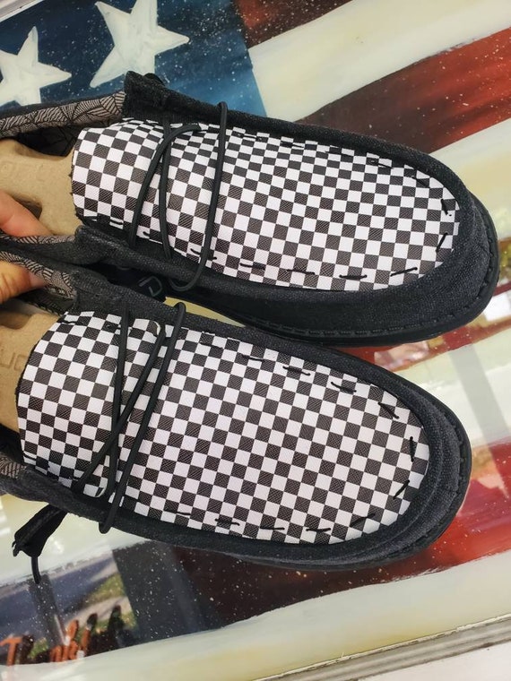 Black and white checkered hey dudes clearance, Racing Checkered Flag Hey Dudes Custom clearance