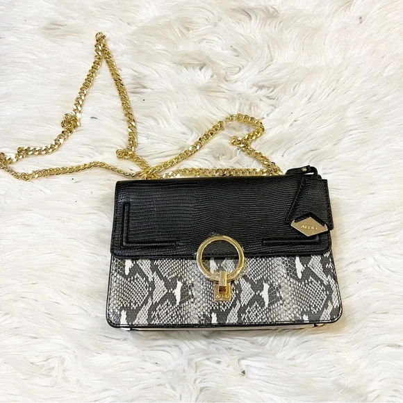 - Aldo black purse with gold chain sale online
