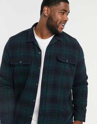Green plaid overshirt clearance, ASOS DESIGN brushed flannel tall wool clearance