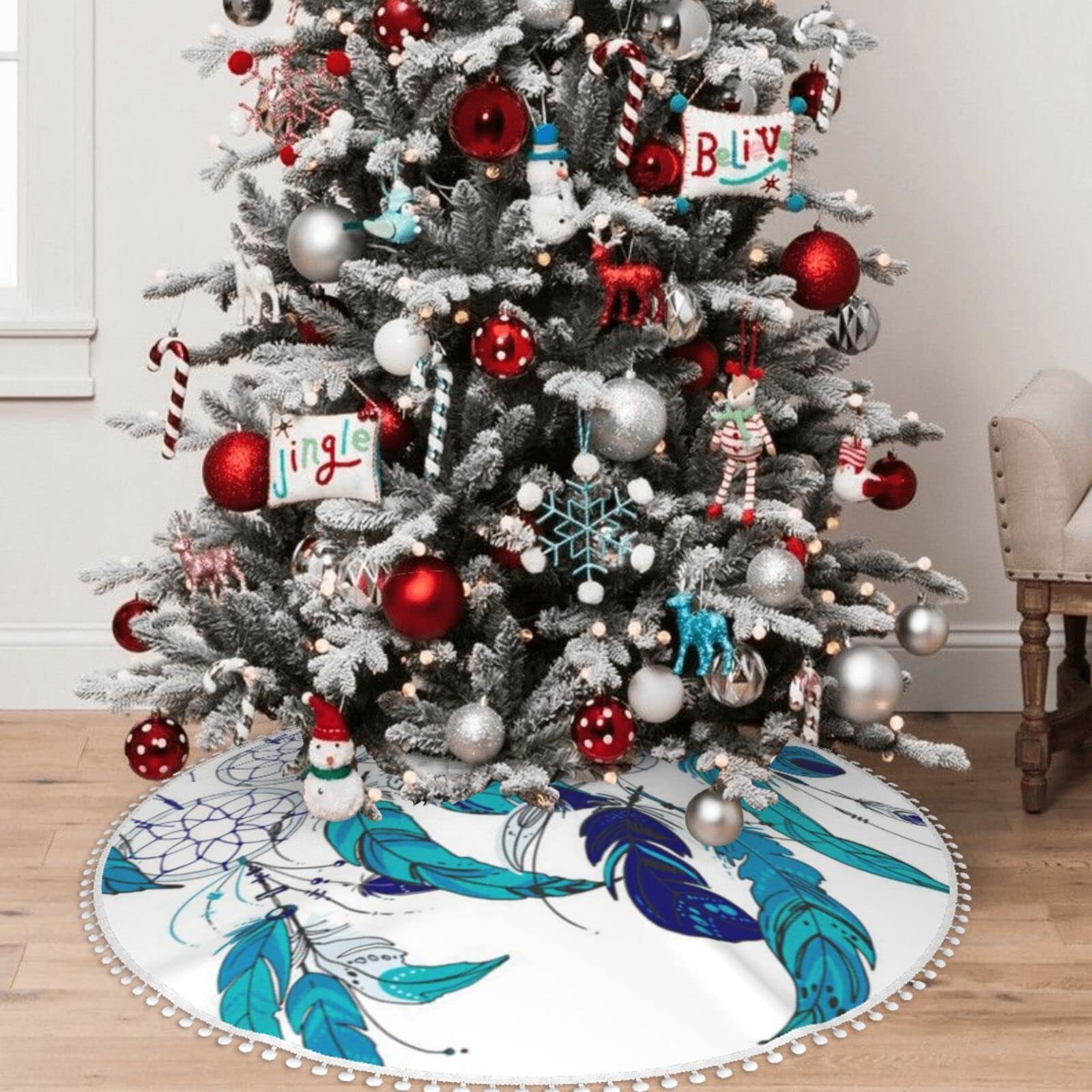 Native christmas tree decorations clearance, EVANEM 30 Christmas Tree Skirt Native American Dream Catcher Christmas Tree Decorations waterproof Xmas Tree Mat with Pom Pom trim for Holiday Christmas Party Rustic Farmhouse Decorations : Amazon.co.uk: Home u0026 Kitchen clearance