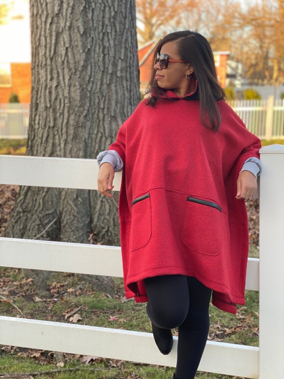 Red wool poncho cape clearance