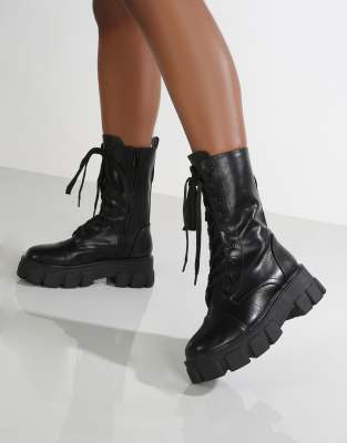 Public desire boots asos clearance, chunky boot with pouch in black clearance