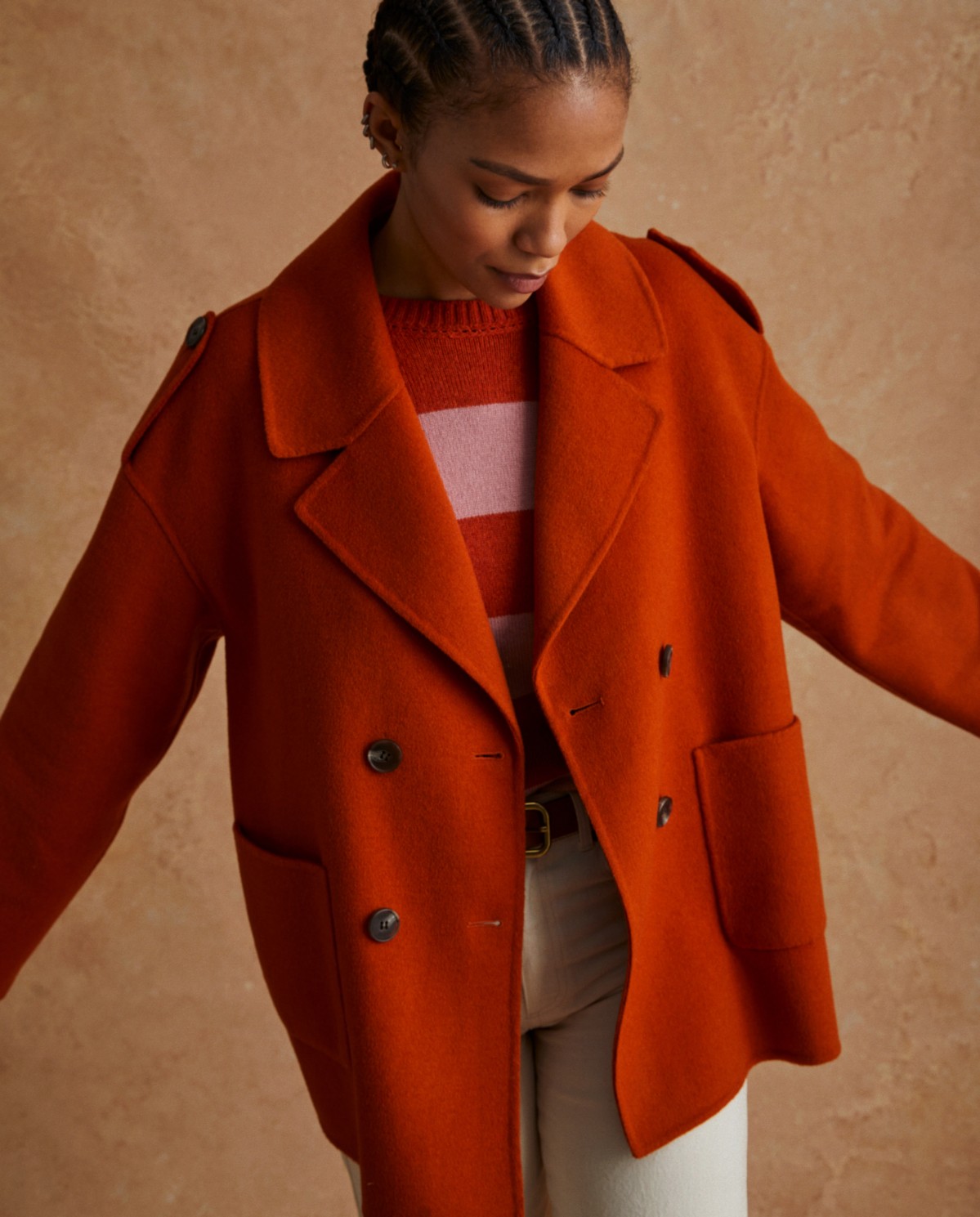 Orange short coat clearance, Short wool coat Orange clearance