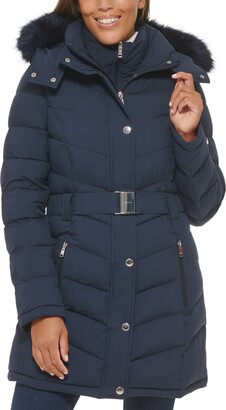 - Tommy hilfiger women's faux fur trim hooded puffer coat free shipping