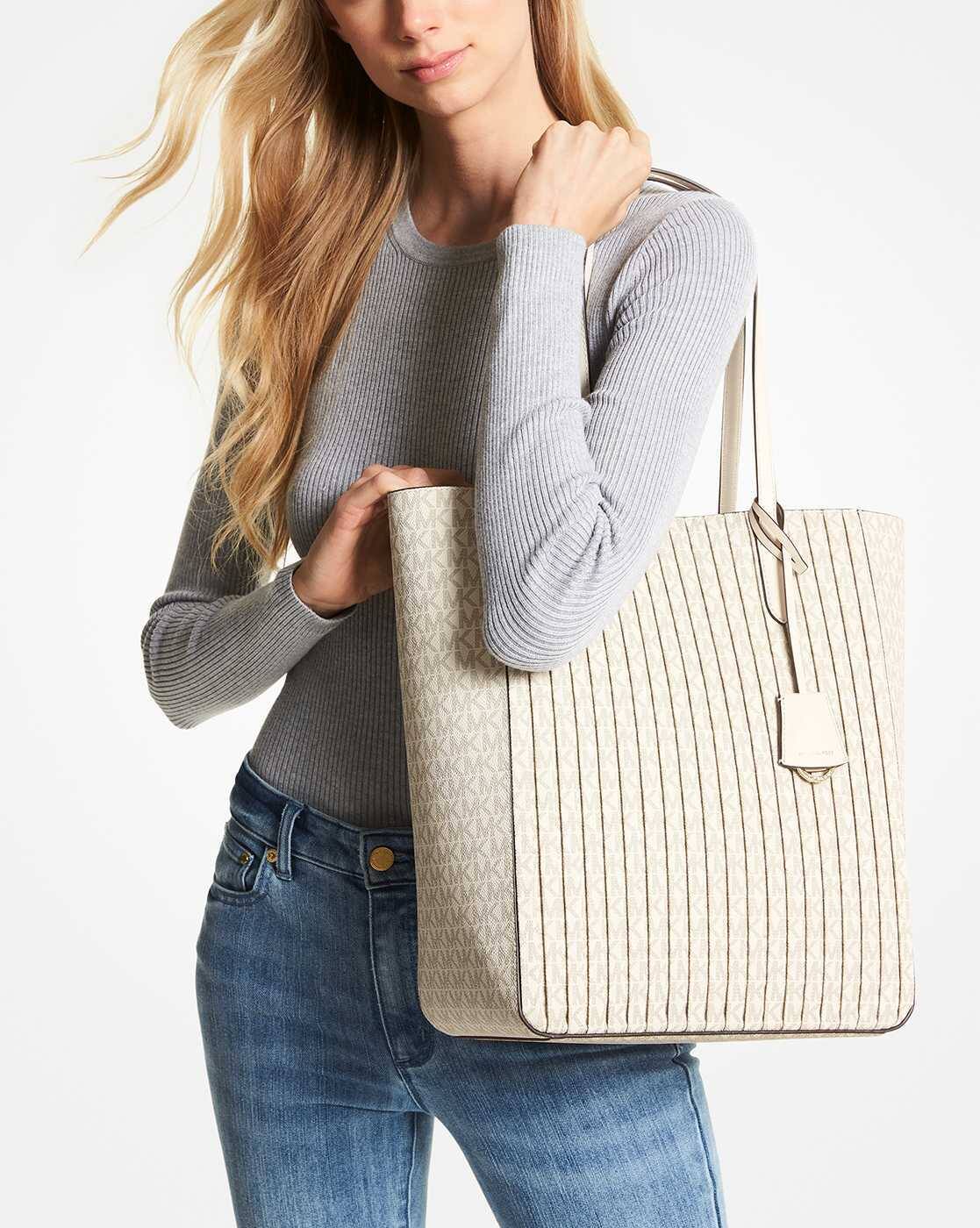 Michael kors sinclair large logo tote bag clearance, Buy Michael Kors Sinclair Large Pleated Logo Tote Bag | Beige Color Women | AJIO LUXE clearance