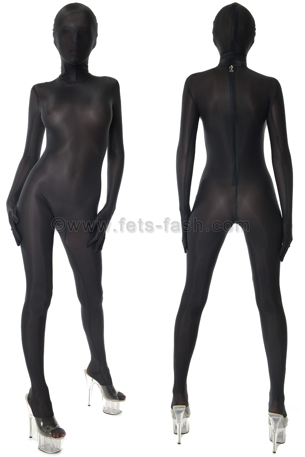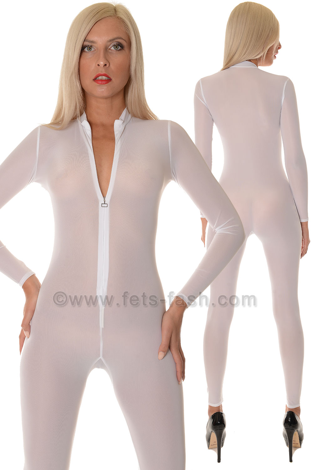 Catsuit opaque clearance, Sheer Opaque Long Sleeve Front Zip clearance