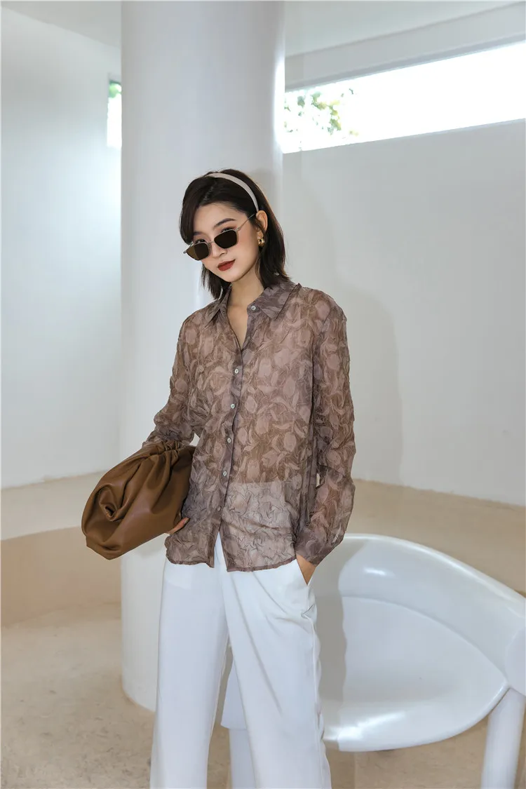 Brown sheer blouse clearance