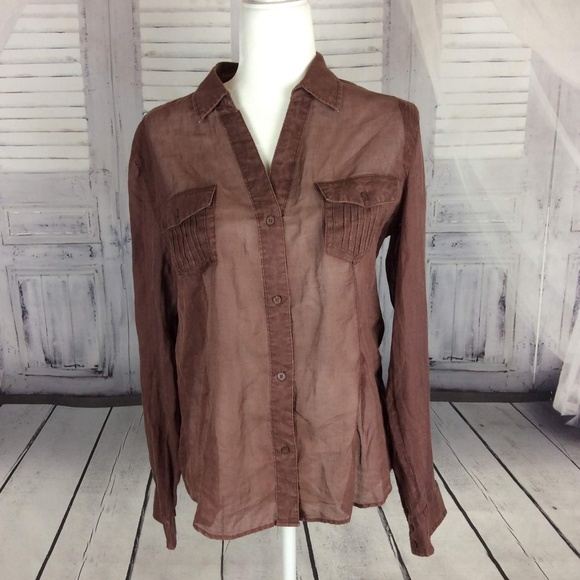 Brown sheer blouse clearance, Dark Brown Mesh Long Sleeve Button Up clearance