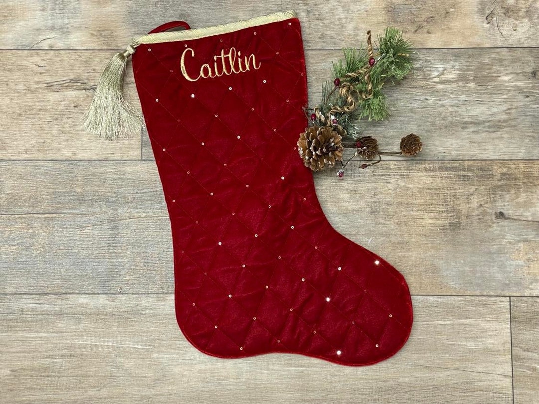 Dark red velvet christmas stocking clearance, RED VELVET Glow in the dark name handmade santa christmas stocking, personalised, embroidered (glow in the dark name) : Amazon.co.uk: Home u0026 Kitchen clearance