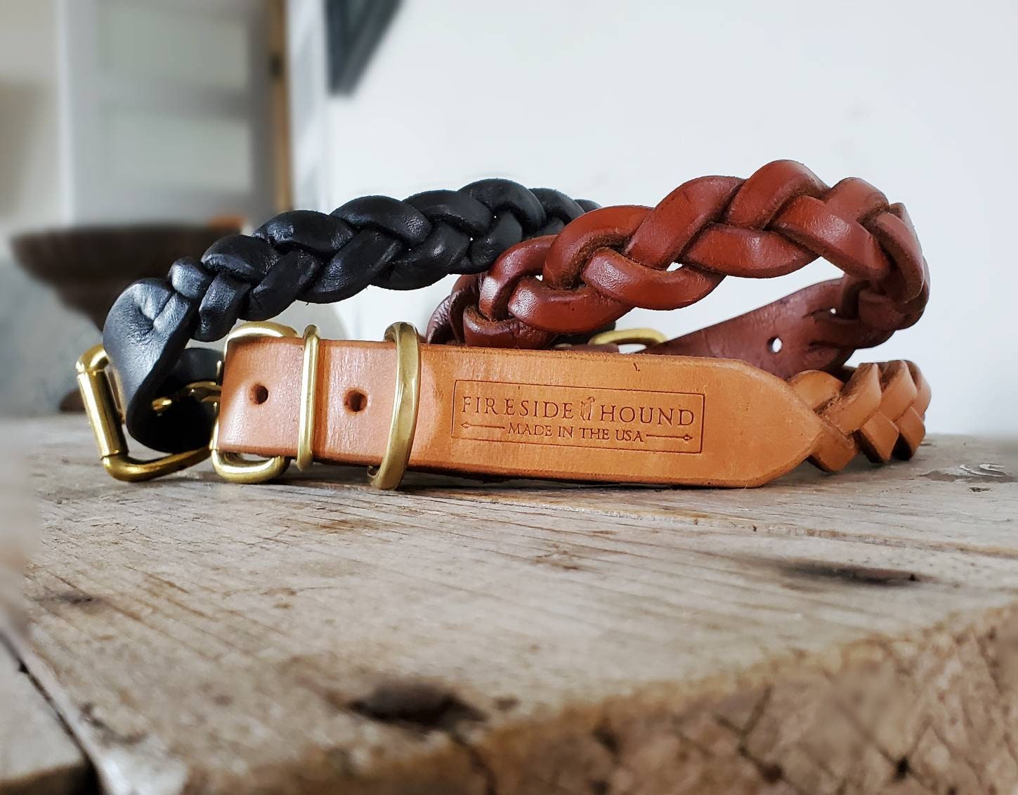 - Braided leather dog collars