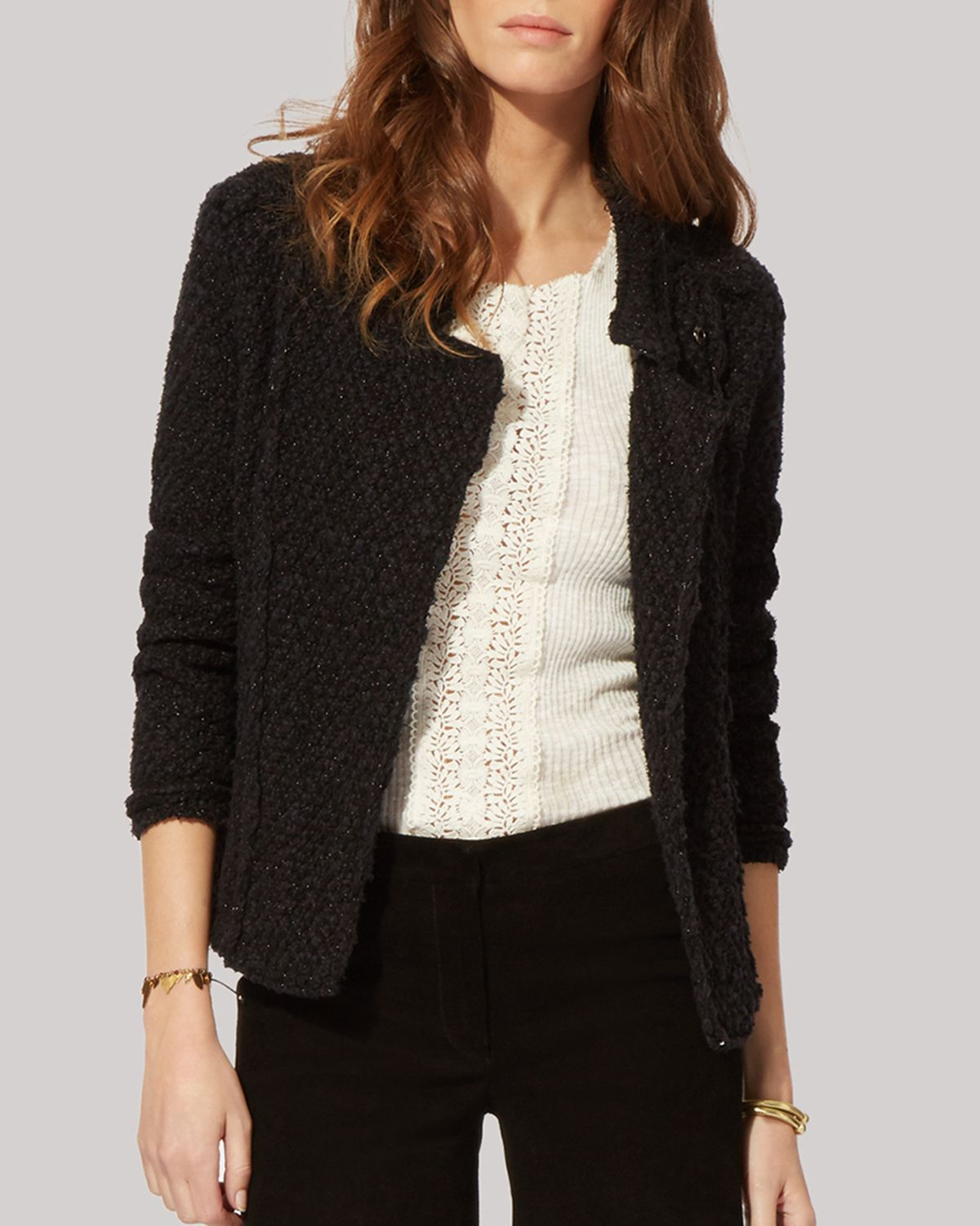 Black boucle cardigan clearance