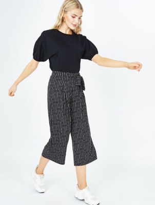 Asda george cropped trousers clearance, Black Printed Cropped Palazzo Trousers clearance