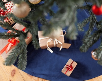- Navy velvet christmas tree skirt