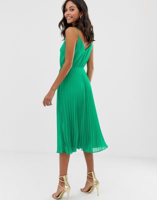 - Asos green pleated dress free shipping