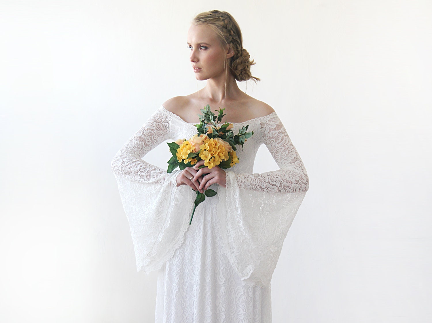 Ivory elopement dress clearance, Ivory Off Shoulder Lace Wedding Dress clearance