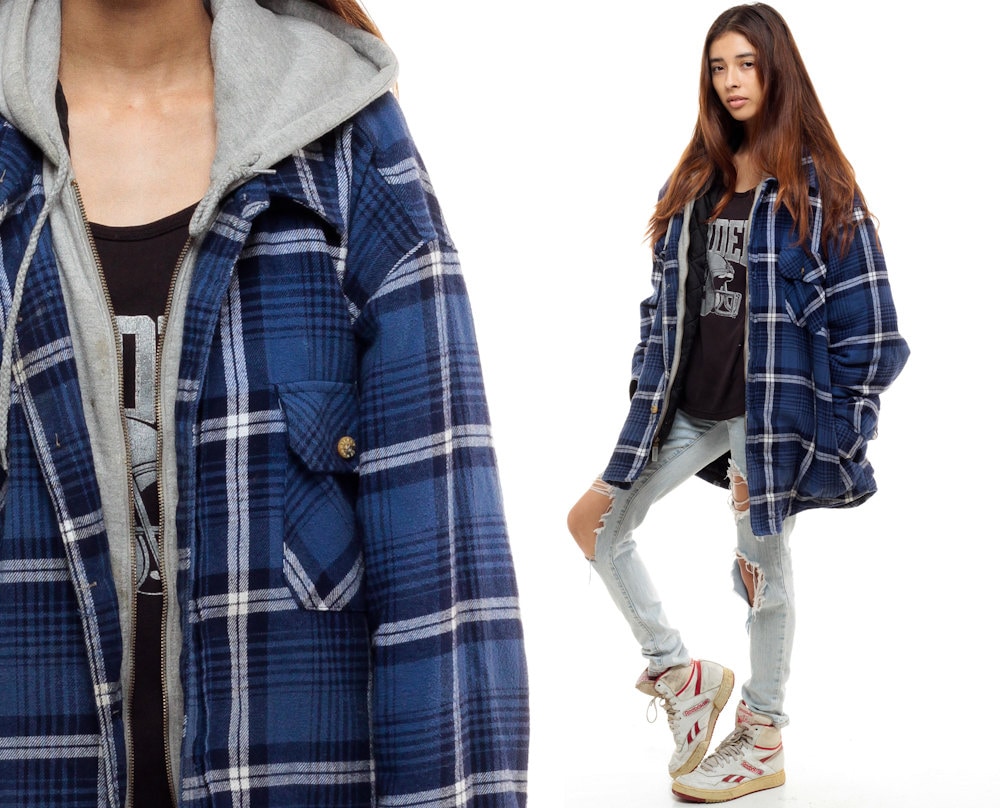 Vintage oversized plaid jacket clearance, Hooded Flannel Shirt PLAID Jacket 90s clearance
