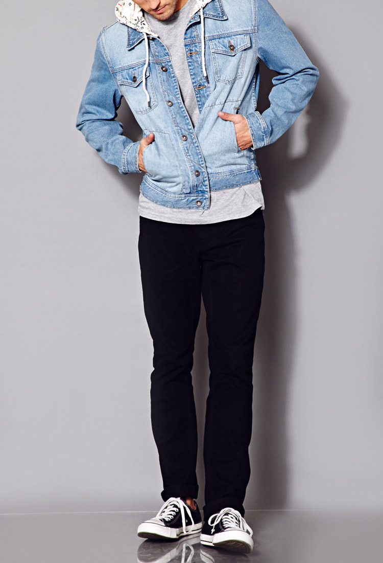 - Light blue denim jacket with hoodie free shipping