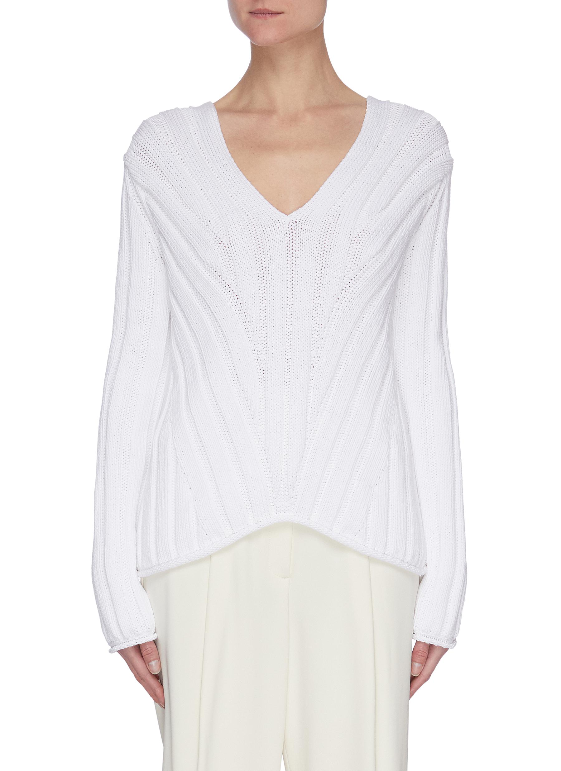 - Ribbed v neck sweater women's sale online