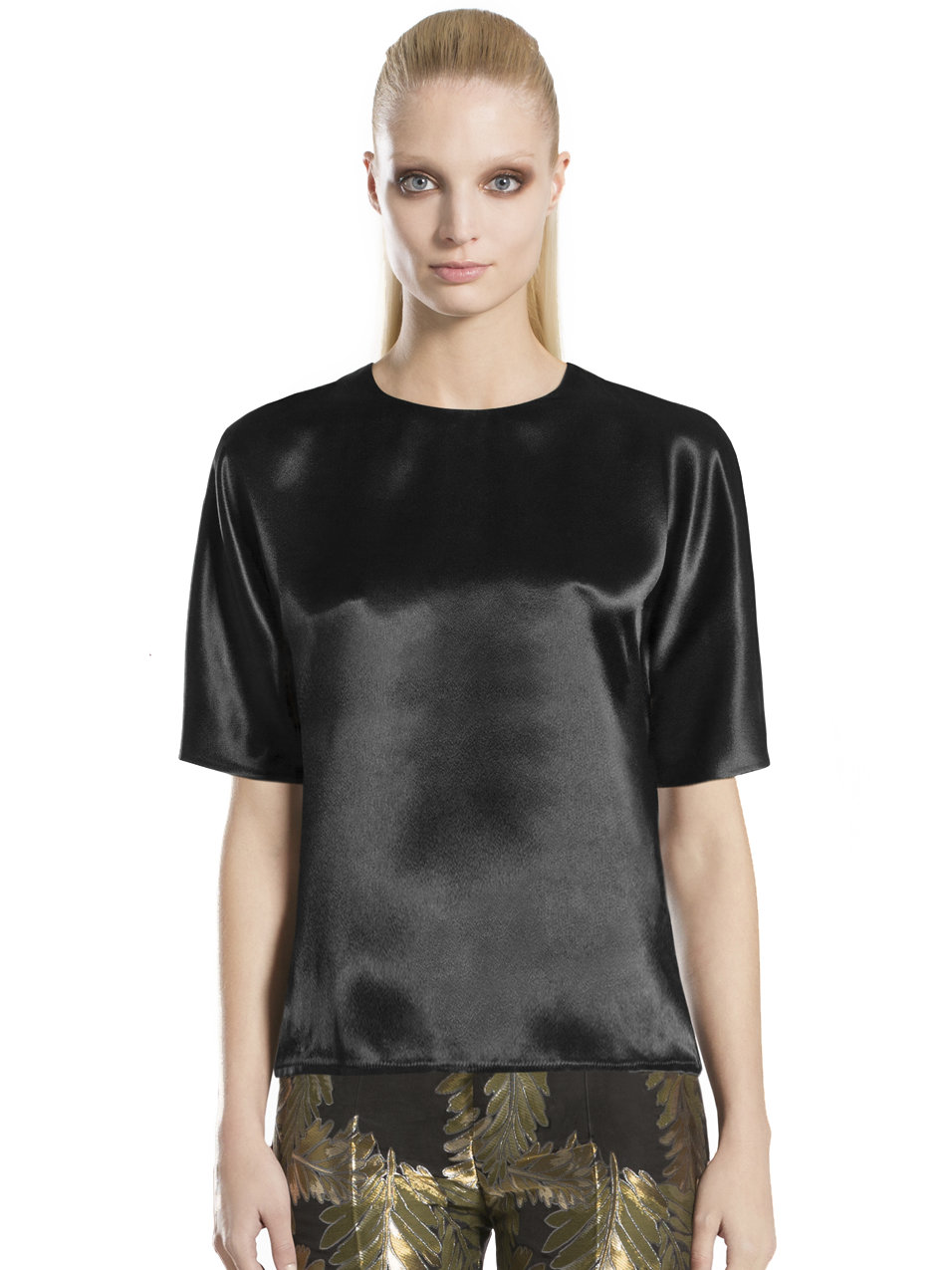 - Black satin top short sleeve shop