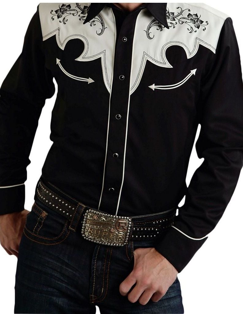 Black and white western shirt clearance, Roper Western Shirt Mens L/S Old West clearance