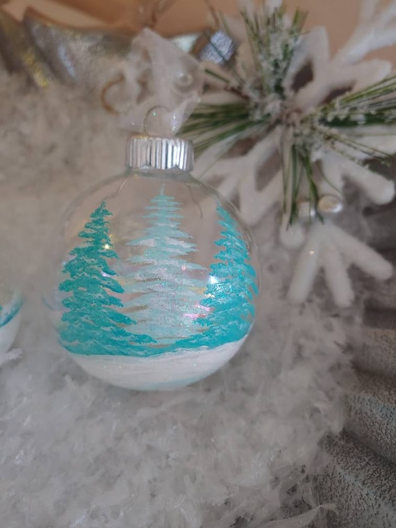 Aqua glass christmas ornaments clearance, Hand Painted Iridescent Glass Christmas Ball Ornament / Aqua - Etsy clearance