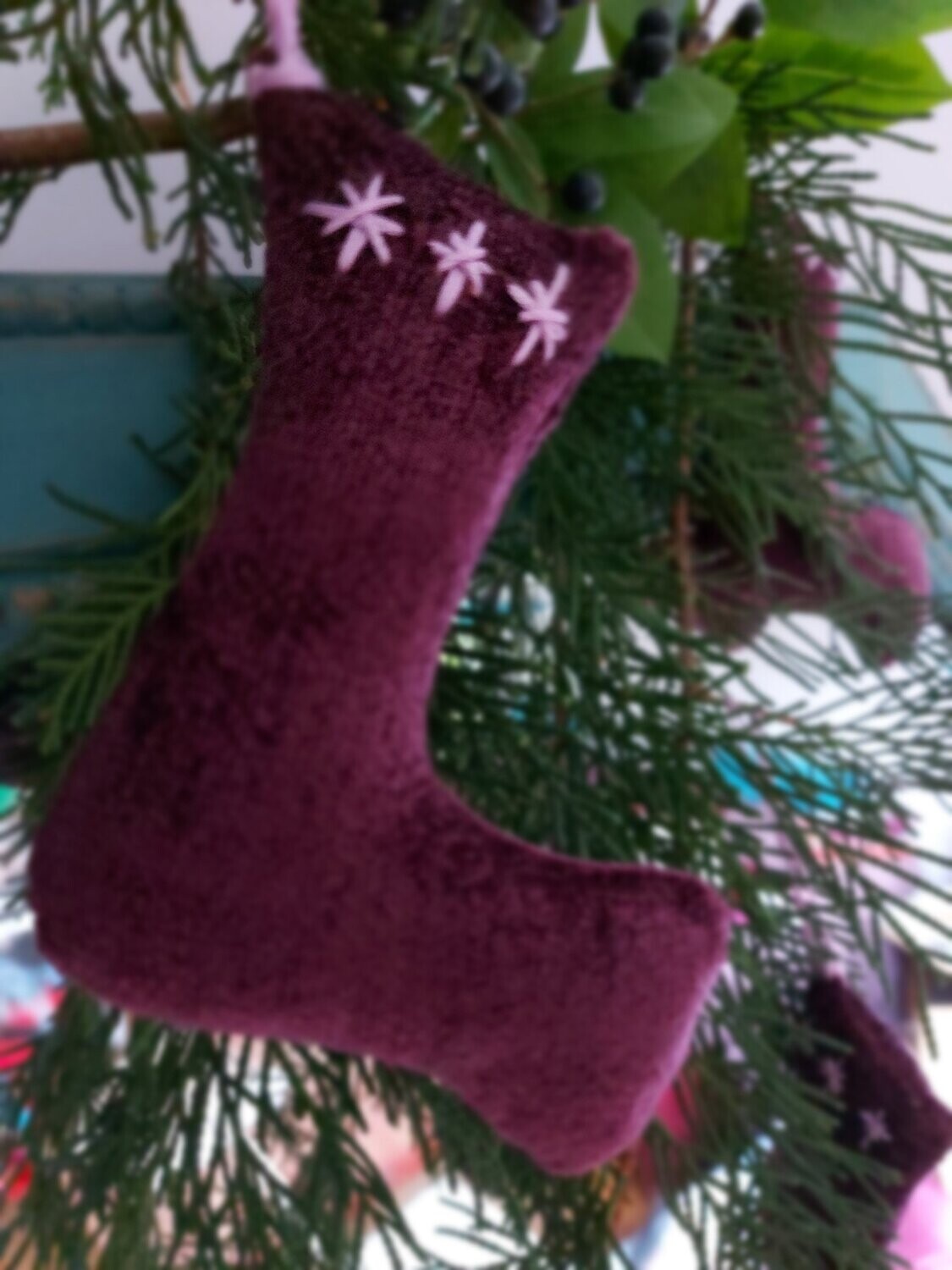 - Mini purple christmas stockings