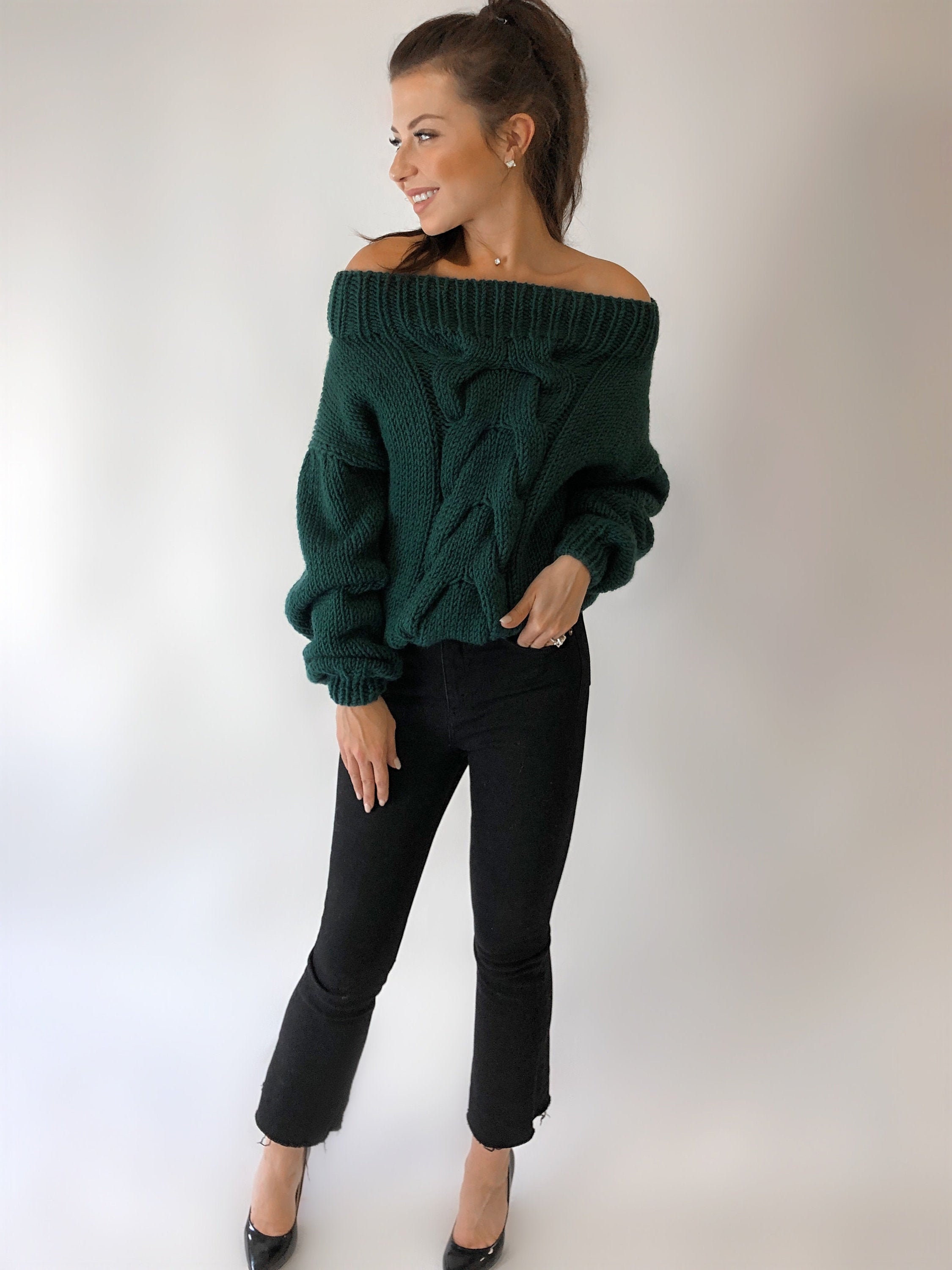 - Emerald green off the shoulder sweater sale