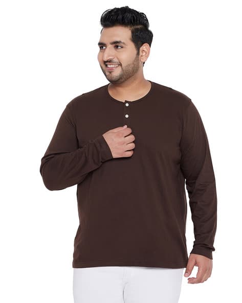 Brown henley t shirt clearance